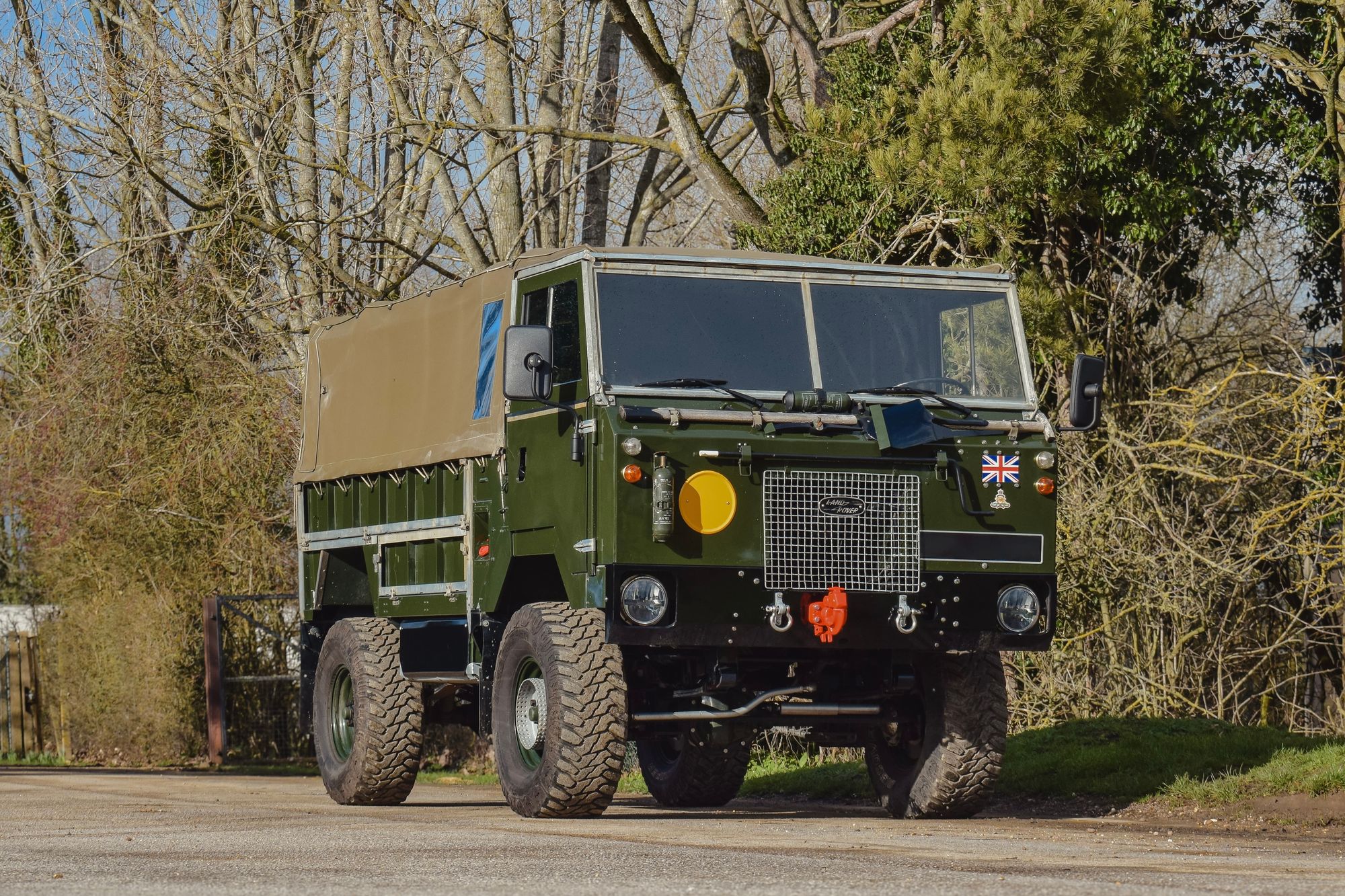The forward-control layout places the driver almost on top of the front axle, with the engine mounted centrally behind the cab. The result is excellent approach angles, impressive ground clearance and a uniquely commanding driving position. They were engineered to tow artillery, carry a one-ton payload and be air-portable, all while running the Rover V8 through a heavy-duty LT95 transmission.