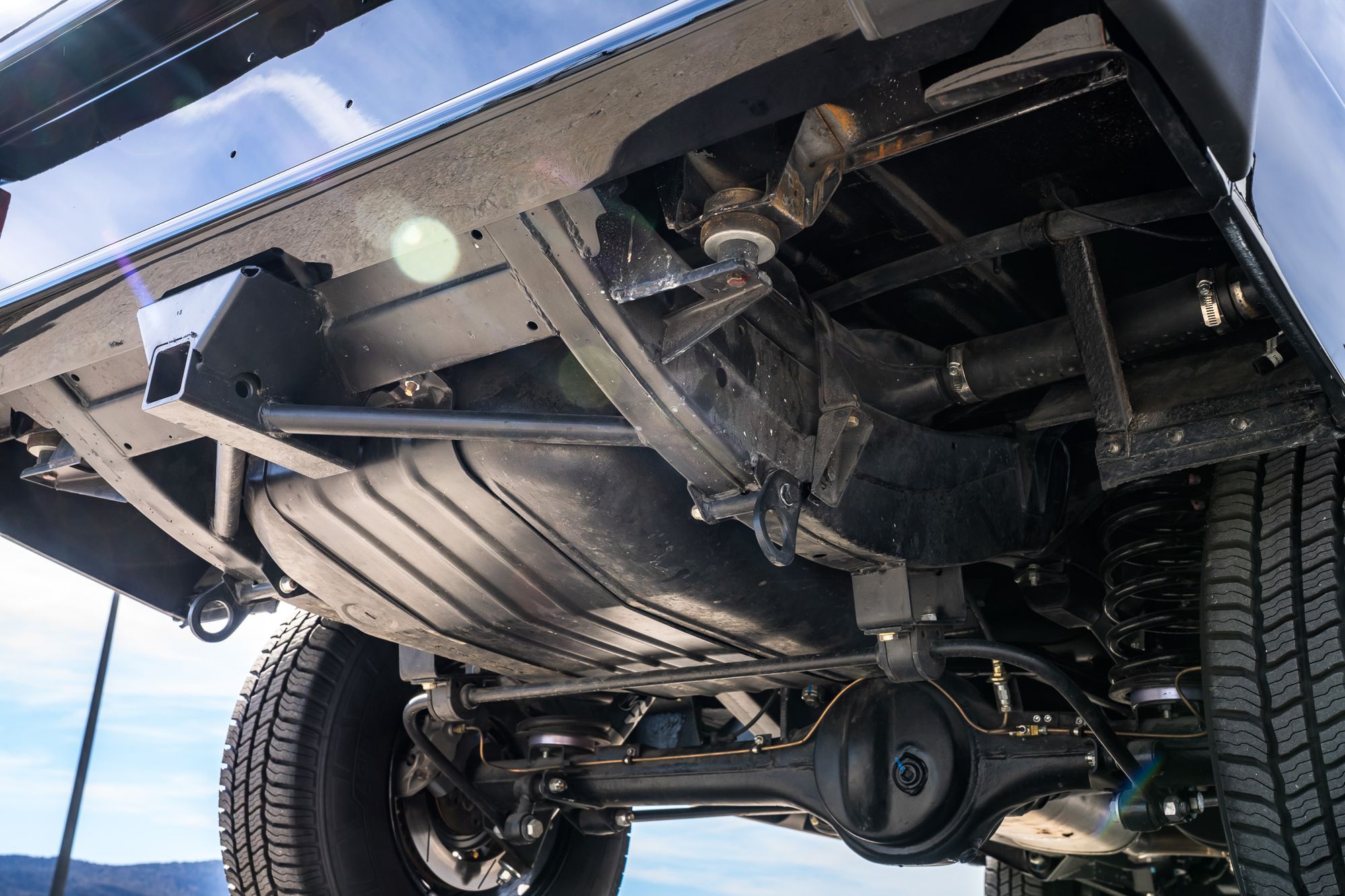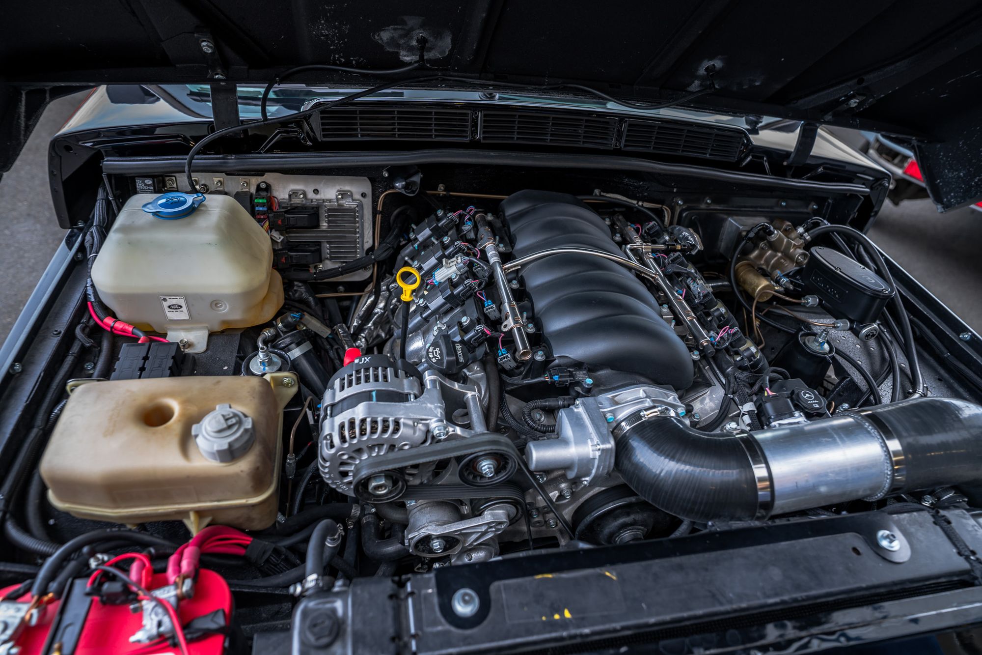 Mechanically, this Range Rover has been enhanced with a GM LS3 tuned crate motor paired with a GM 4L80 transmission, delivering smooth and responsive V8 power. The bespoke GM PCM “Sport” tune ensures modern drivability while maintaining reliability. The drivetrain features a rebuilt Ascroft LT230 4x4 system, along with rebuilt axles and differentials.