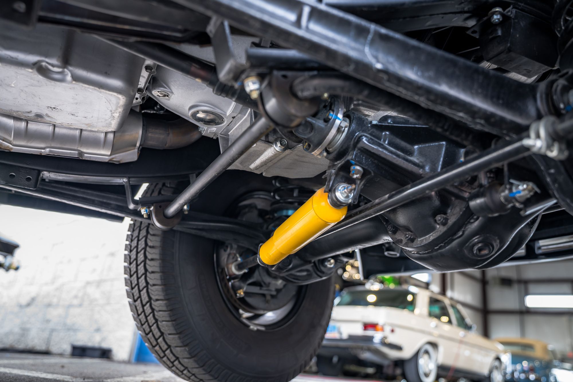 Additional upgrades include a Wilwood brake system, Bilstein comfort suspension, new electrical harness, Lokar shifter, Dakota Digital gauge set, new sunroof, upgraded removable stereo system, USB connectivity, trickle charge system, kill switch, and metal switch work throughout the cabin.