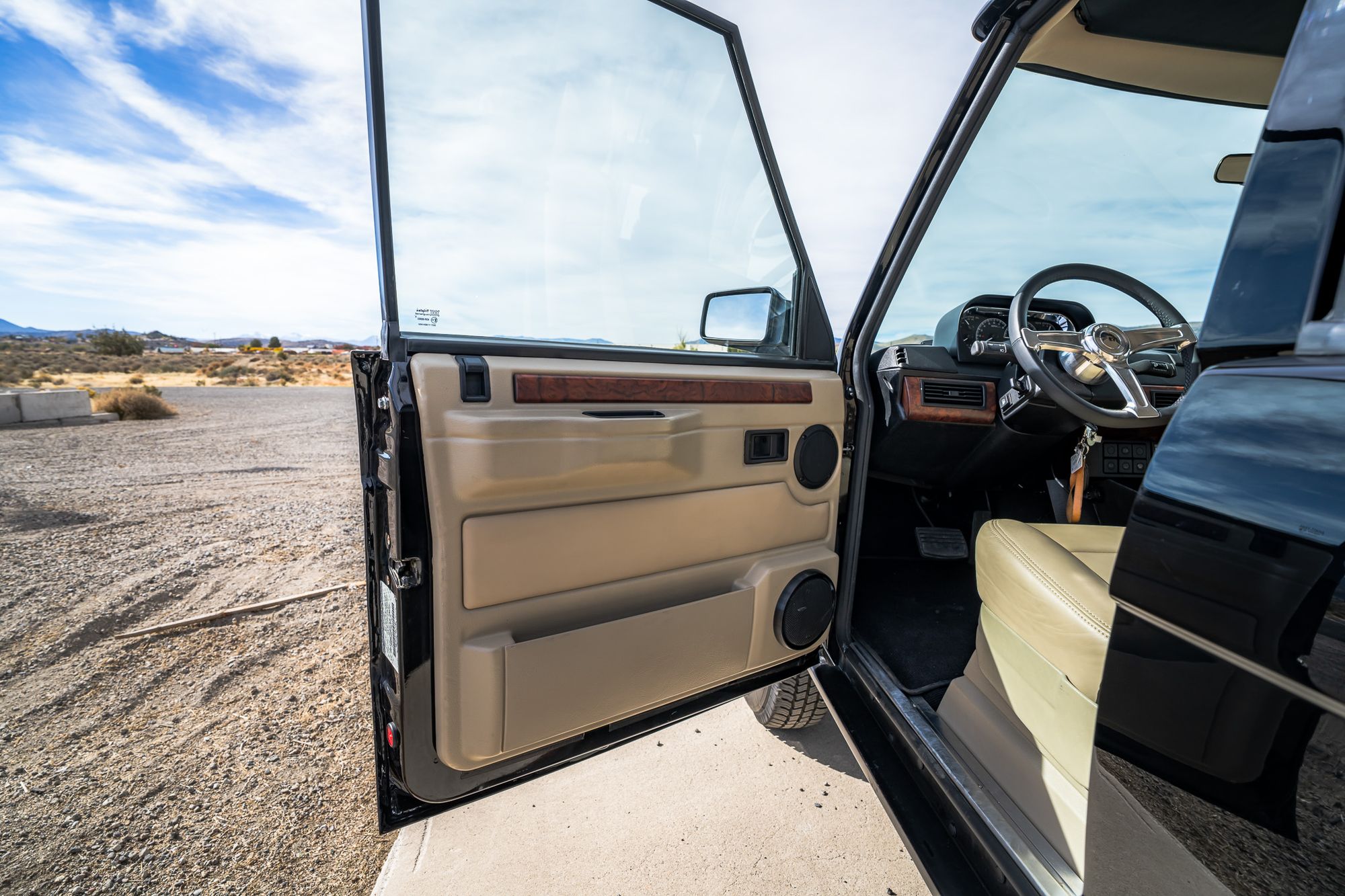 This 1991 Range Rover Classic Short Wheel Base (LHD) is a meticulously restored and upgraded example, blending timeless style with modern performance. The exterior is finished in Land Rover Japan Black (non-metallic, forward reference paint code) with fully restored body panels, trim, and exterior elements, all painted using premium Spies & Spies Hecker materials.